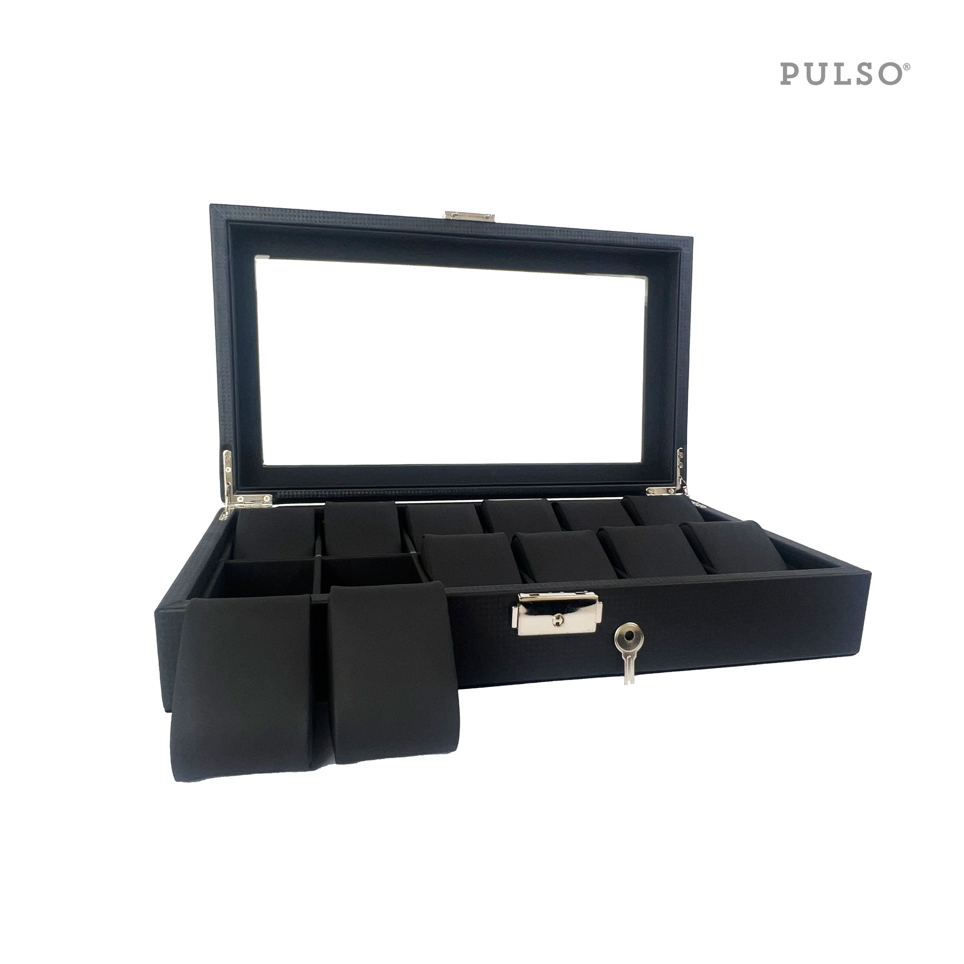 2. Capacidad: Espacio para 12 relojes, con compartimentos individuales.