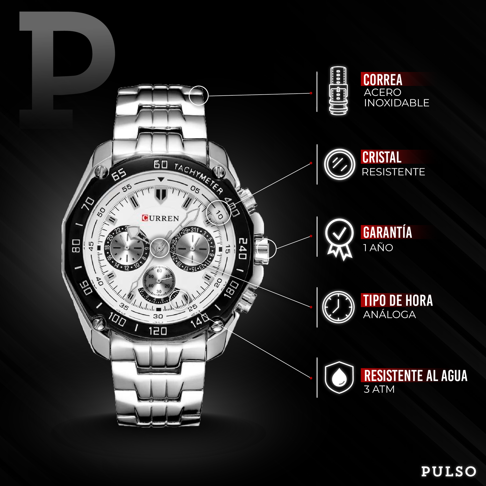 • Material de la correa: Acero Inoxidable